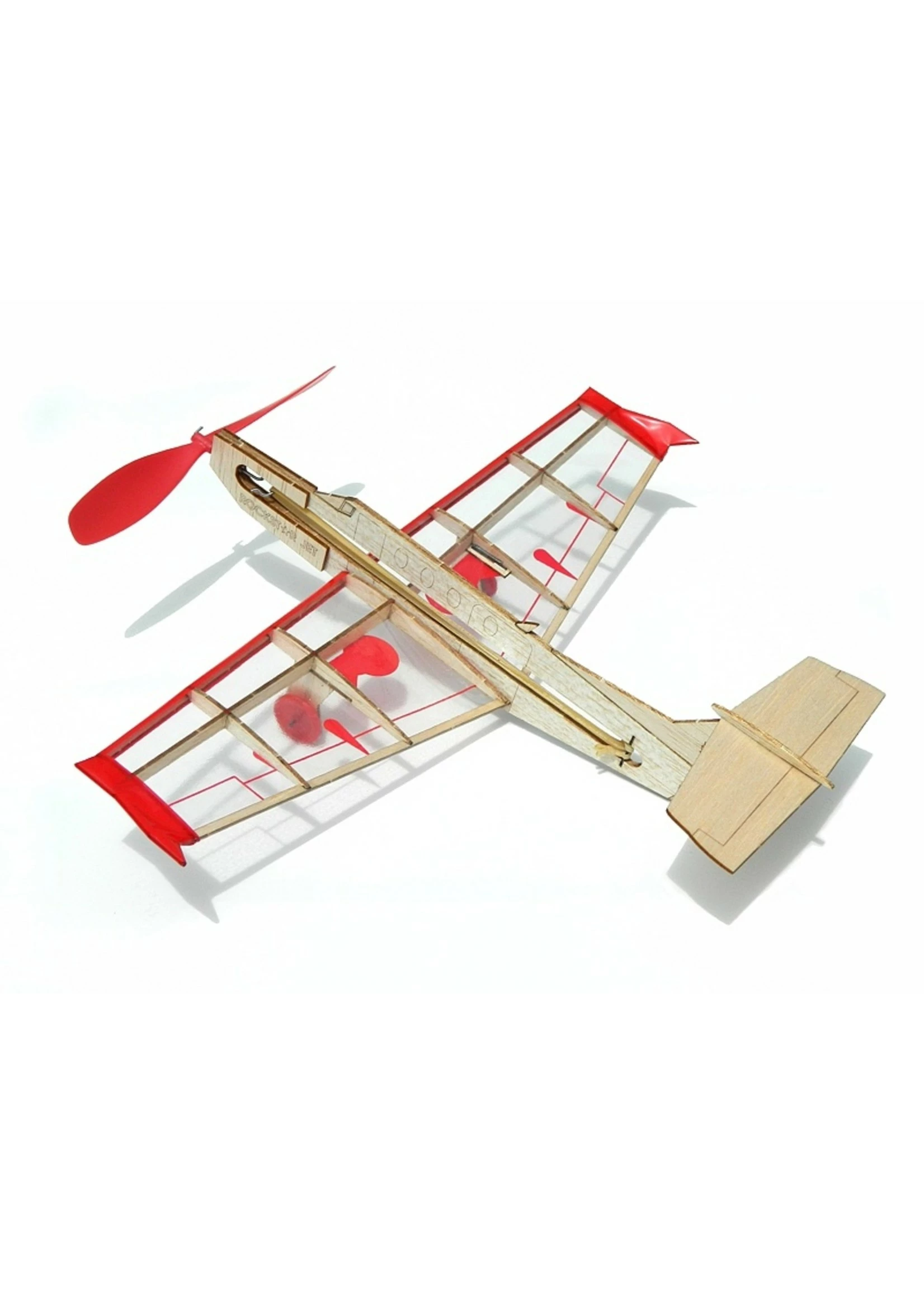The kit contains LASER CUT balsa parts, plastic propeller & wheels, detailed stick on wing covering and rubber band motors. All you will need to complete the model is glue and wire cutters!