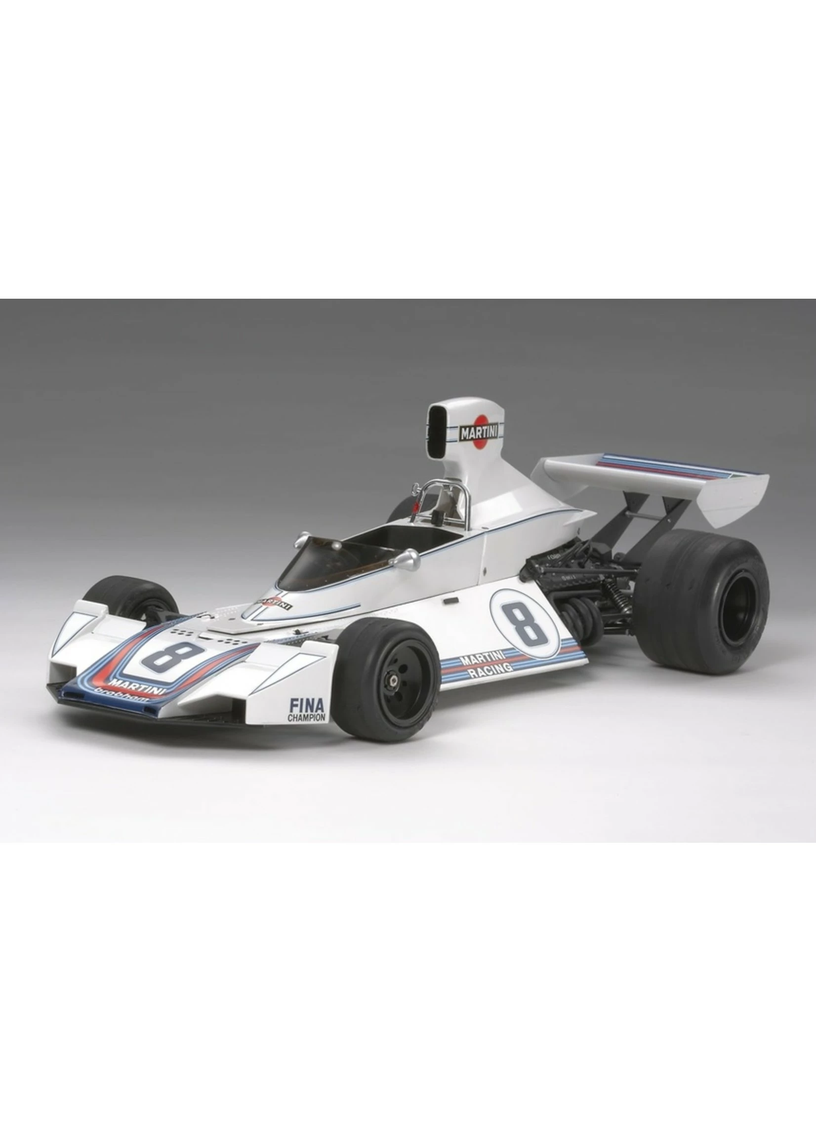 - 1/12 scale plastic assembly kit of the Martini Brabham BT44B 1975. Length: 355mm, width: 160mm, height: 109mm.