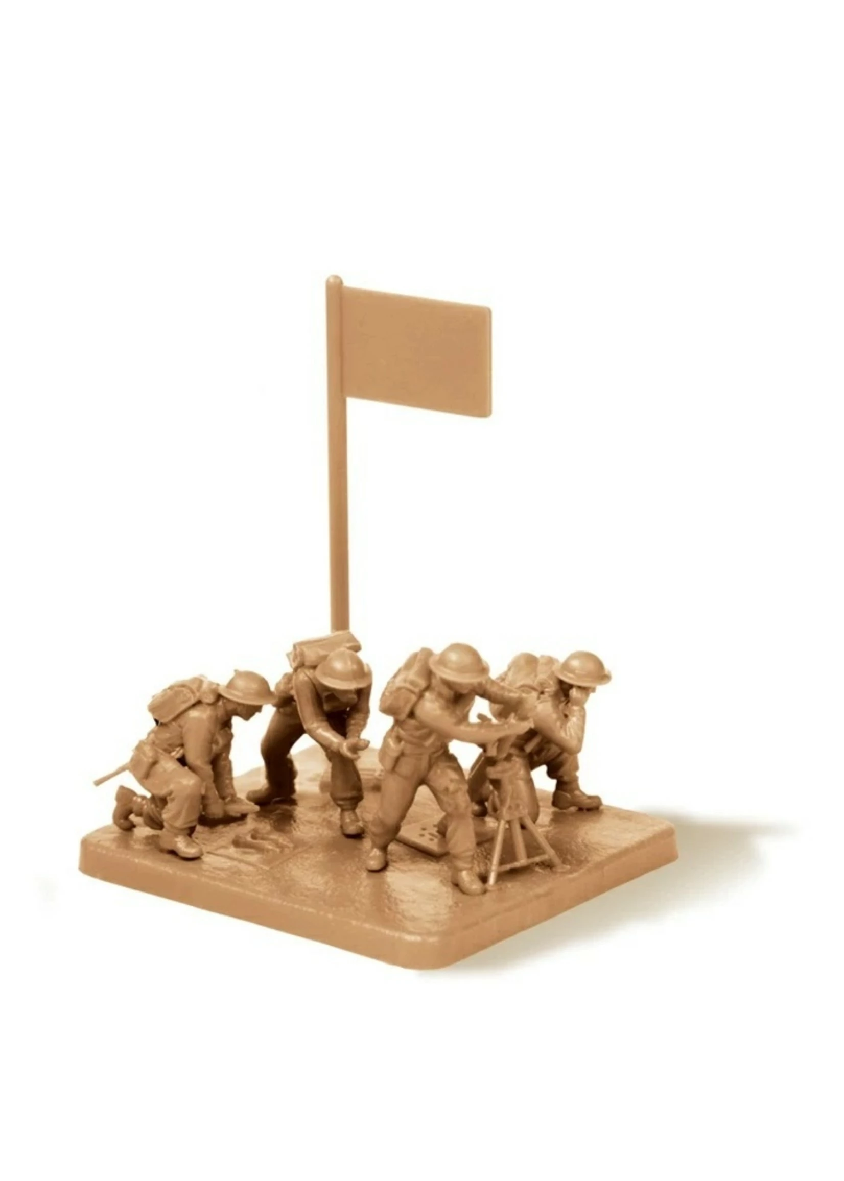 Contents: 4 unpainted soldiers 1 mortar – 1 unit base with flag – 1 unit card